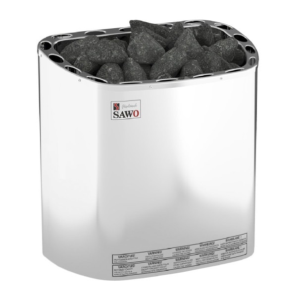 Невеликі габарити роблять піч для сауни Sawo Scandia SCA-45 NS-N однією з пріоритетних моделей для парильних приміщень об'ємом 3 - 6 м3. Нагрівач для сауни зовні має кожух із нержавіючої сталі, всередині піч посилена оцинкованим покриттям. Монтаж здійснюється підвісним способом на стіну. Максимальна місткість каміння становить 22 кг. Така кількість каменю не тільки швидко прогріває повітря, але й дає можливість насолоджуватися великою кількістю легкої пари. Серія електрокам'янок SCANDIA відрізняється лаконічним дизайном, який впишеться в концепцію інтер'єру будь-якої парної, а також компактними розмірами.